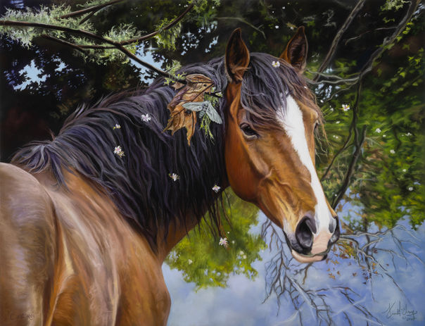 "Many of us with horses in our lives know the special, mostly fleeting, often spontaneous, moments of harmony with our horse. These are like entering another dimension, being in the moment with our horse. When I saw the completed painting by Kim, I immediately felt us as “One Being”. Now, every morning, I experience the essence of my loved horse. This is a gift I am very happy to give myself.” ~ Pat
